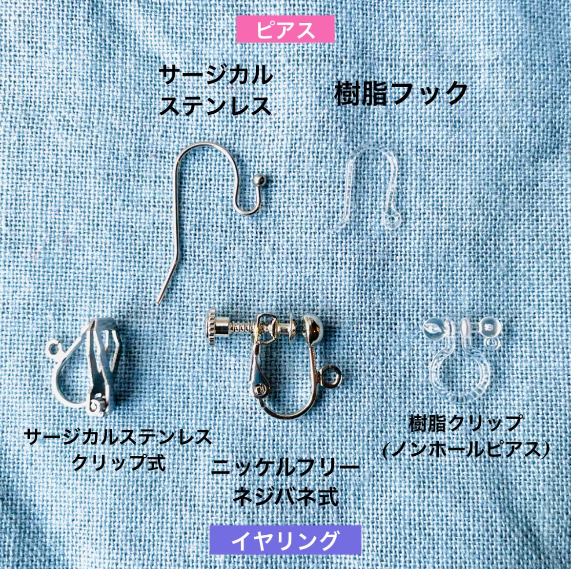 ※ピアス/イヤリングをお選びいただけます。サージカルステンレス製、樹脂製などがございます。ご希望のパーツをお選びください。