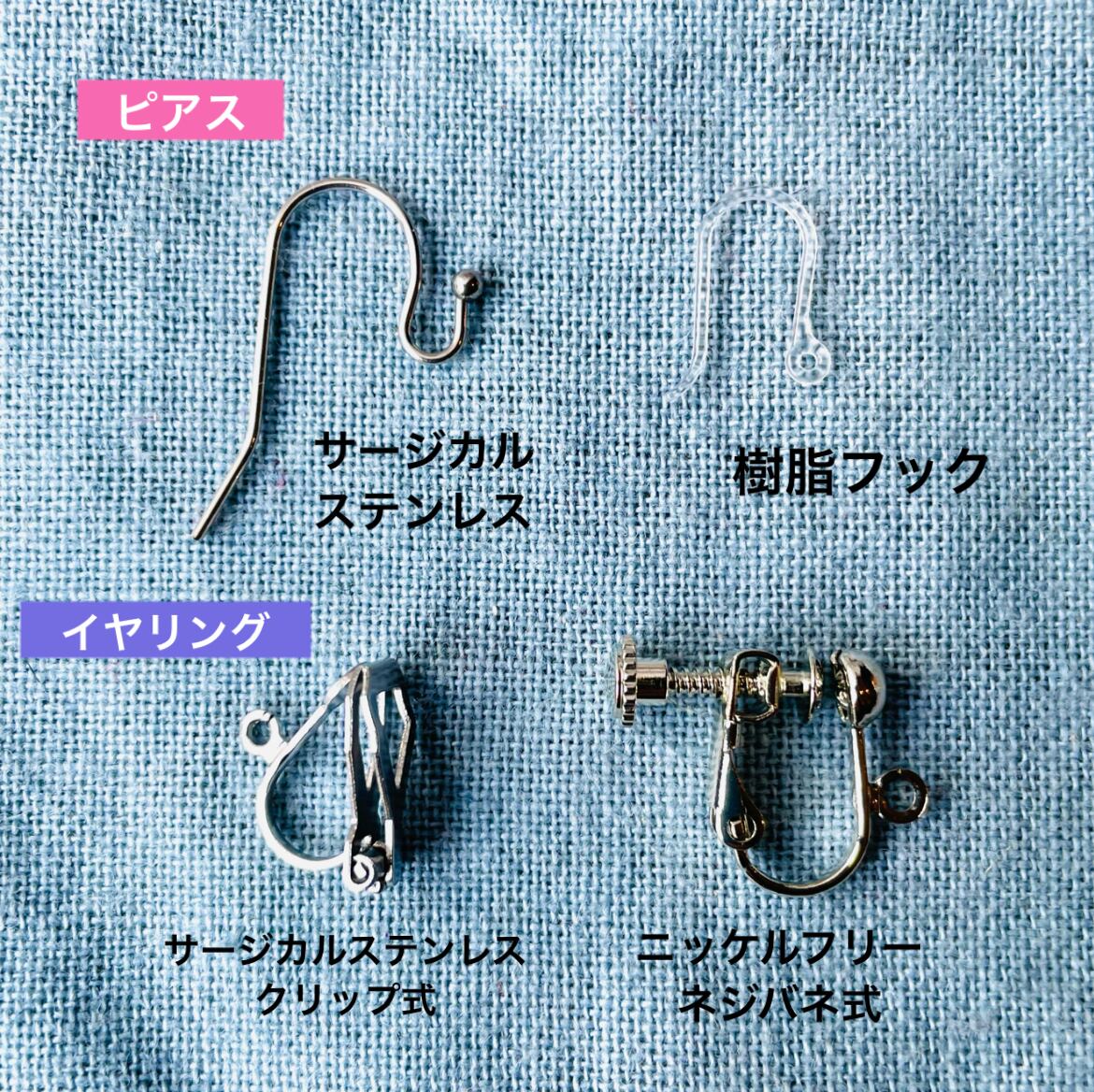 ※ピアス/イヤリングをお選びいただけます。サージカルステンレス製、樹脂製などがございます。ご希望のパーツをお選びください。